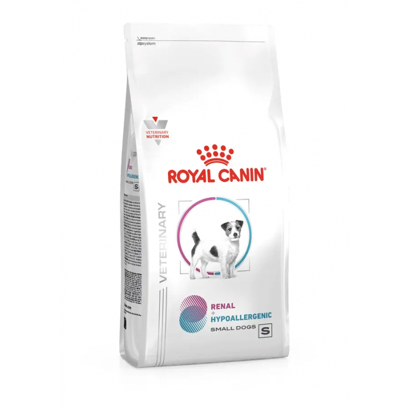 ROYAL CANIN® RENAL+HYPOALLERGENIC SMALL DOG kuivtoit on täisväärtuslik dieettoit koertele, mis on koostatud neerutalitluse toetamiseks kroonilise või ajutise neerupuudulikkuse korral ning koostisosa ja toitaine talumatuse vähendamiseks. Piiratud fosforisisaldus. Hüdrolüüsitud valguallikad ja valitud süsivesikuallikad. SOOVITUSED: Enne kasutamist või kasutusaja pikendamist soovitatakse konsulteerida veterinaararstiga. Andke seda toitu neerutalitluse toetamiseks kroonilise neerupuudulikkuse korral esialgu kuni 6 kuud. Koostisosa ja toitaine talumatuse vähendamiseks andke seda 3–8 nädalat: kui talumatuse tundemärgid kaovad, võib seda toitu esialgu kasutada kuni ühe aasta.