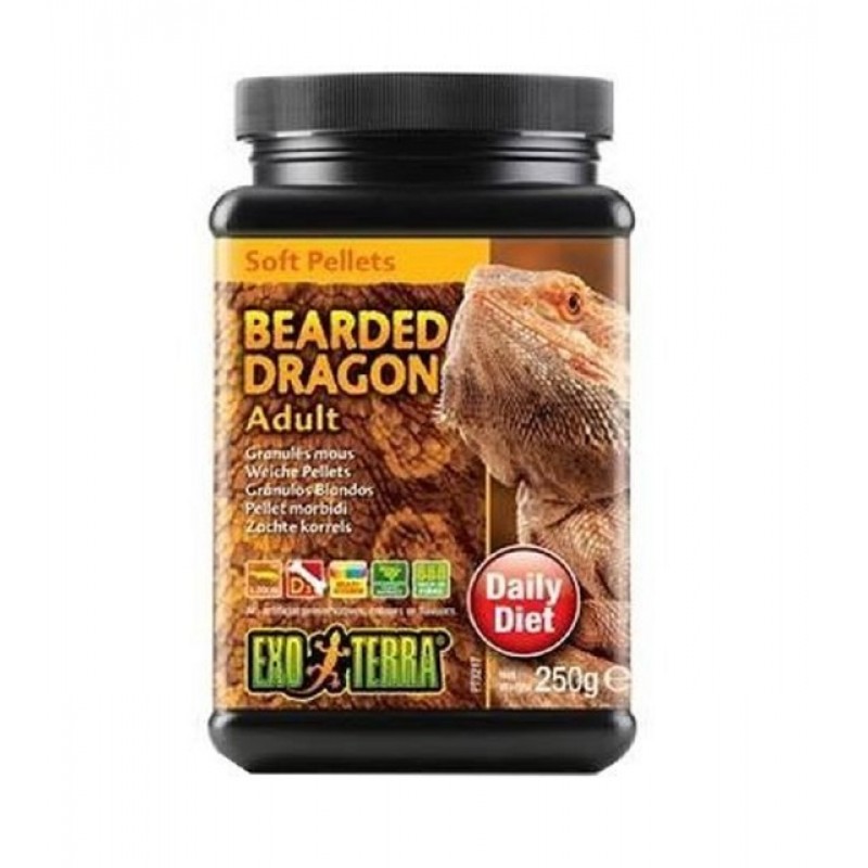 Exo Terra Bearded Dragon toitu võib enne söötmist niisutada puuviljamahlaga, et suurendada maitseomadusi, mõned agaamid aktsepteerivad pehmemaid, leotatud graanuleid. Pärast avamist hoidke jahedas ja kuivas kohas.